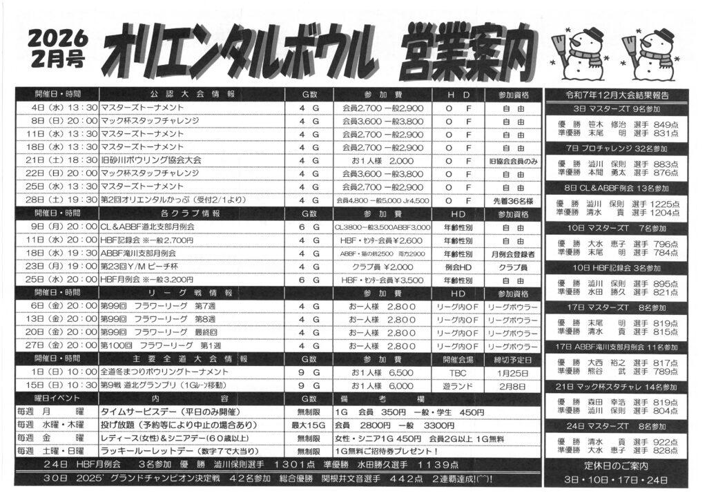 ボウリング料金表