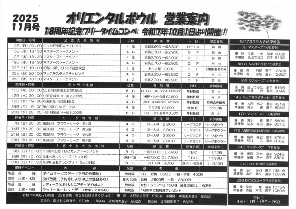 ボウリング料金表